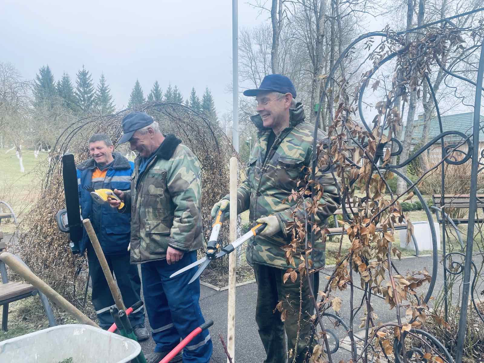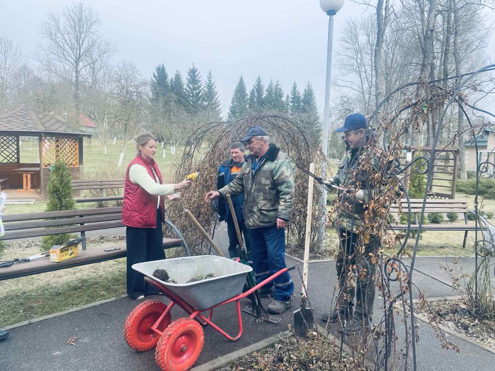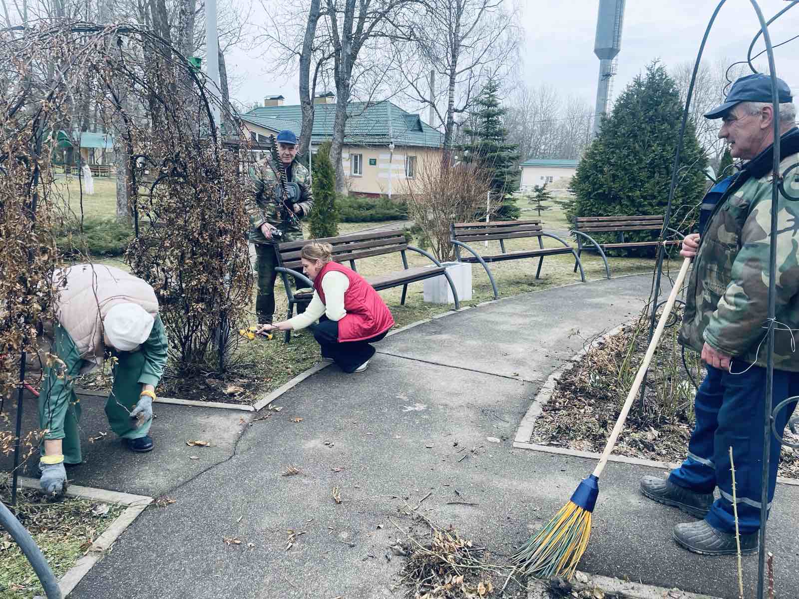 А сотрудники нашего пансионата Свитанак уже во всеоружии несут трудовую вахту по благоустройству прилегающей территории!