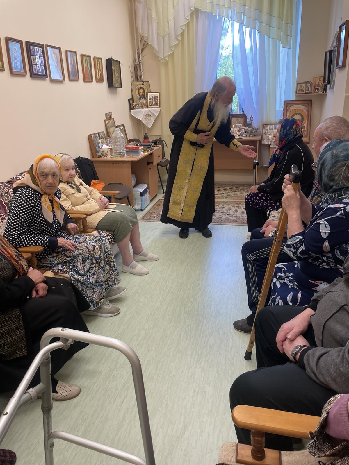 Каждую среду в домовой церкви нашего пансионата проходят службы для православных. Протоиерей Александр, священнослужитель церкви в честь иконы Божьей матери «Утешение» проводит не только службы, но и уделяет внимание всем страждущим: кого-то надо выслушать, кому-то сказать доброе слово, а с кем — то поговорить о вере и надежде в жизни.
