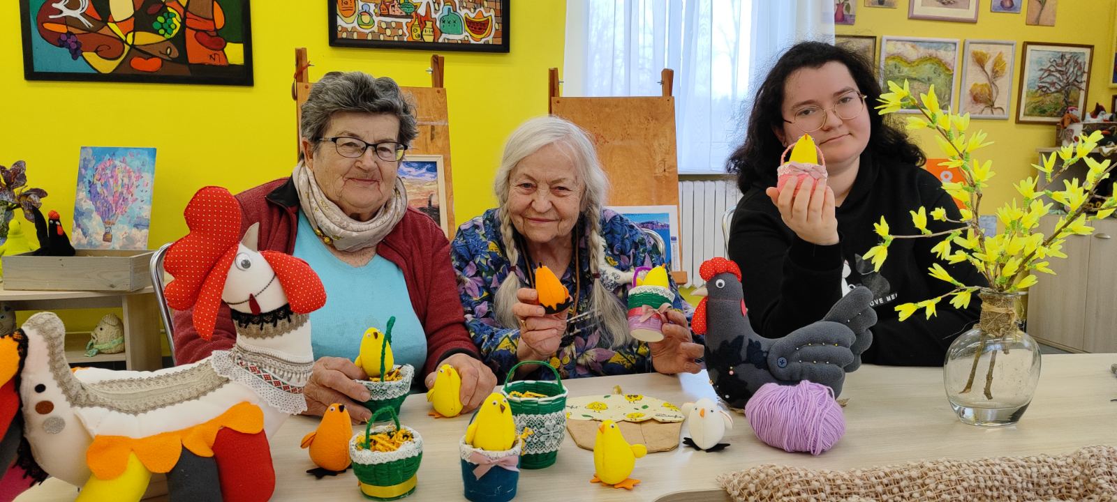 На мастер-классе проживающие освоили технику плетения корзин. Все очень старались и в итоге изготовили замечательные сувениры к светлому празднику Пасхи. Корзиночки стали ярким и креативным украшением к праздникам.